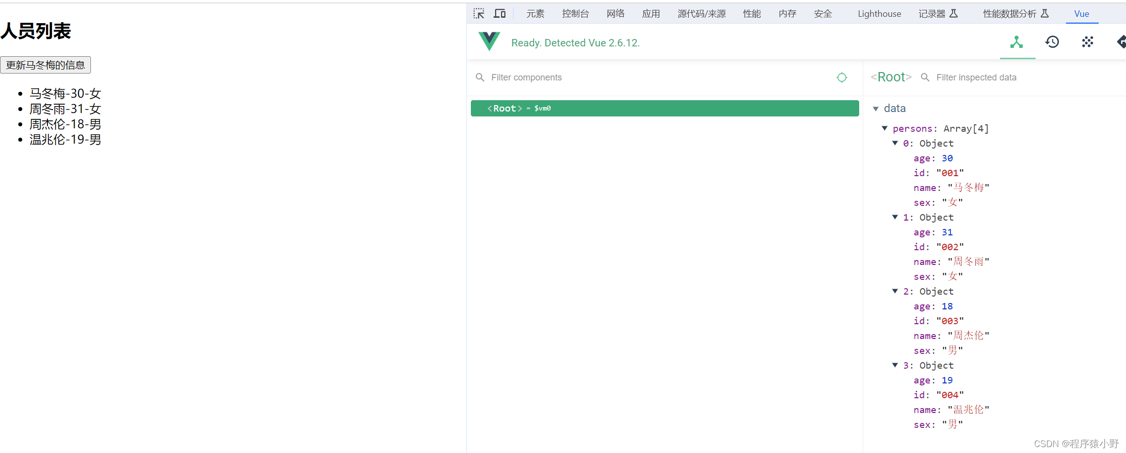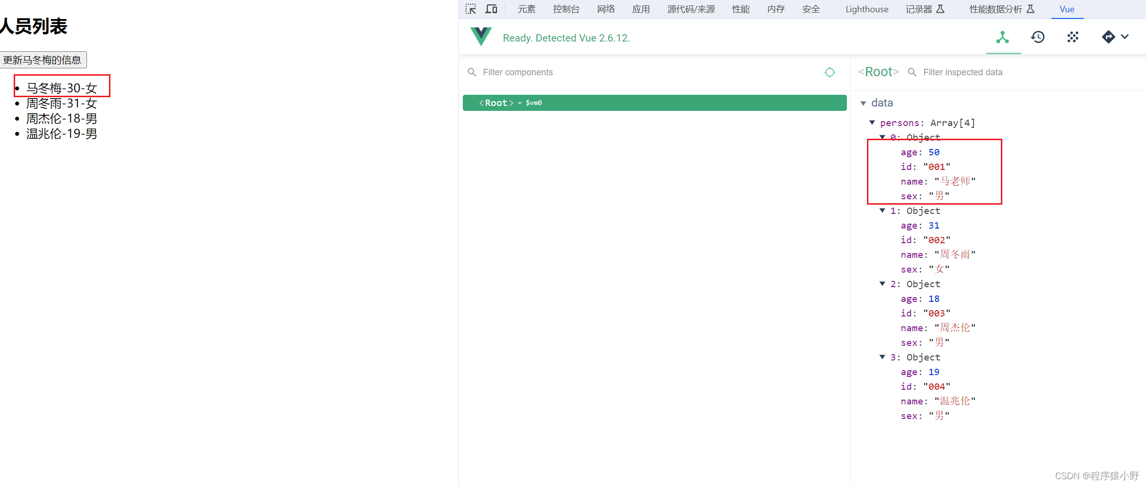 首先直接看图:data中有一个persons数组,现在想修改第一条数据
