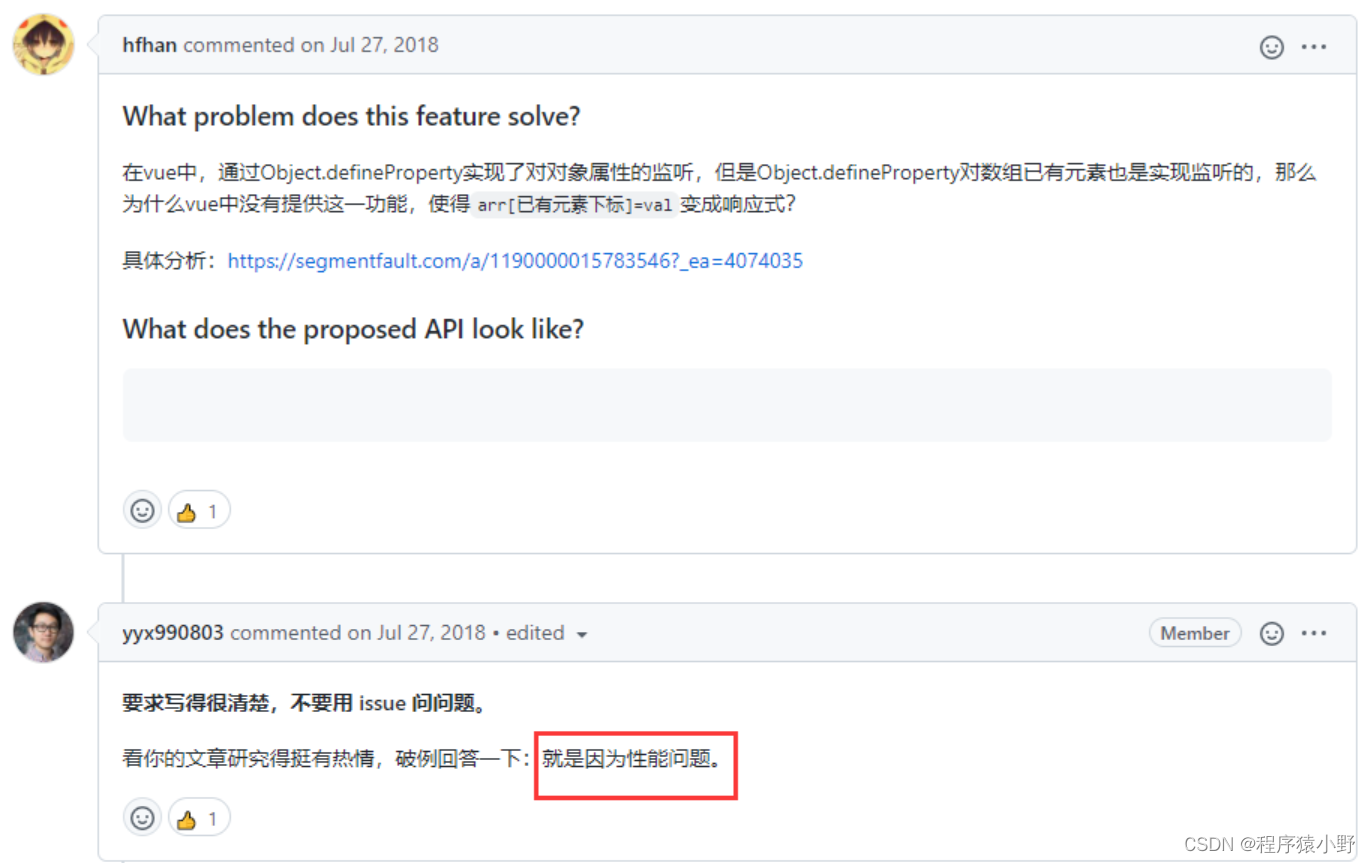 为什么?尤大给出的解释是:基于性能问题的考虑。