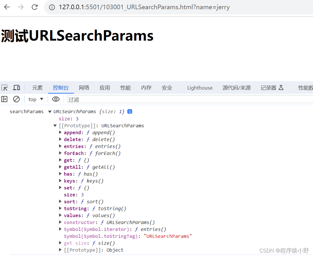 下面根据控制台的这张图来详细说说 URLSearchParams 原型上有哪些属性和方法: