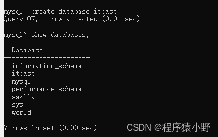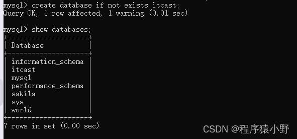 在同一个数据库服务器中,不能创建两个名称相同的数据库,否则将会报错:ERROR 1007 (HY000): Can't create database 'itcast'; database exists