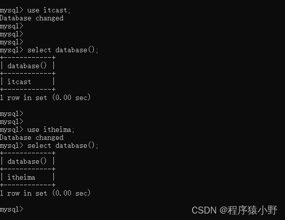 use 数据库名 ; 举例:use itcast; 将数据库切换到 itcast