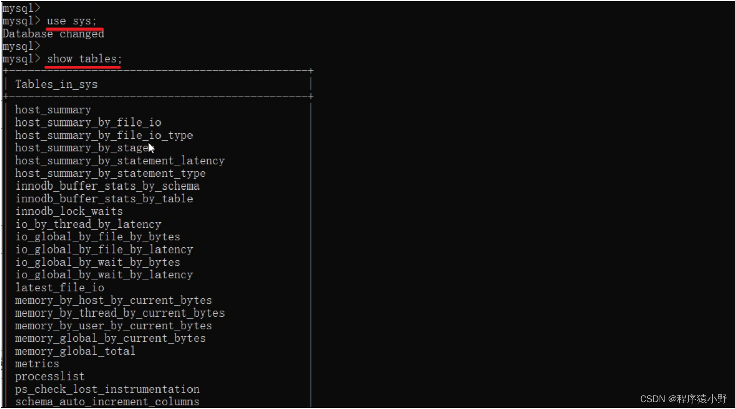 比如,我们可以切换到sys这个系统数据库,并查看系统数据库中的所有表结构。