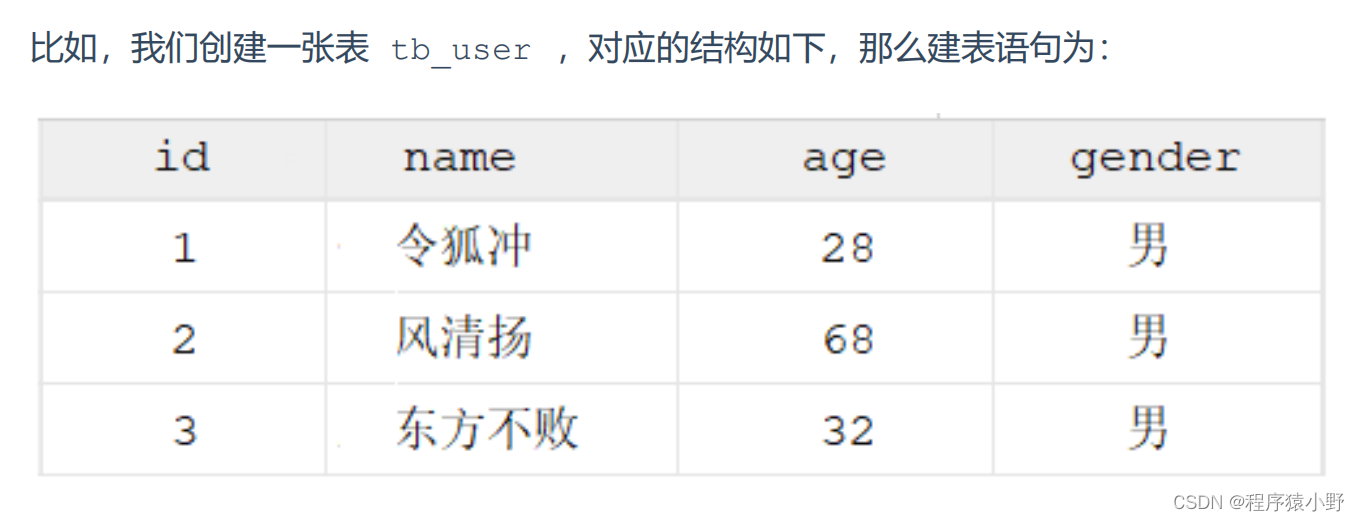 CREATE TABLE 表名(字段1 字段1类型 [ COMMENT 字段1注释 ],字段2 字段2类型 [COMMENT 字段2注释 ],字段3 字段3类型 [COMMENT 字段3注释 ],......字段n 字段n类型 [COMMENT 字段n注释 ]) [ COMMENT 表注释 ] ;
