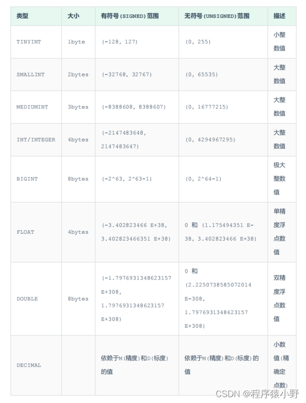 如:1). 年龄字段 -- 不会出现负数, 而且人的年龄不会太大age tinyint unsigned2). 分数 -- 总分100分, 最多出现一位小数score double(4,1)