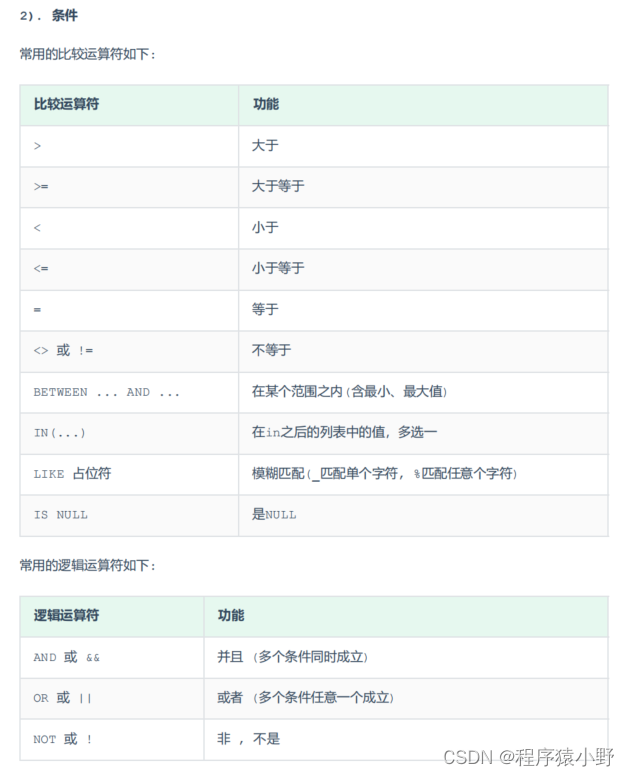 语法: SELECT 字段列表 FROM 表名 WHERE 条件列表 ;