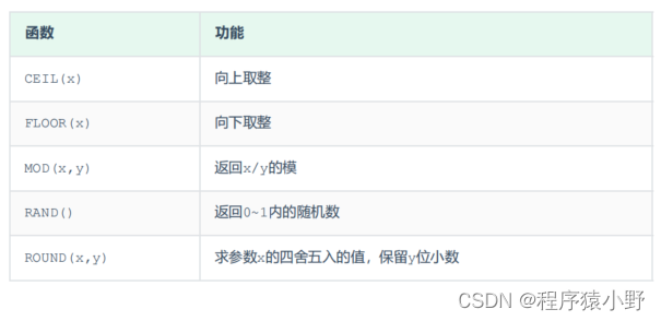 常见的数值函数如下:
