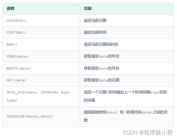 常见的日期函数如下: