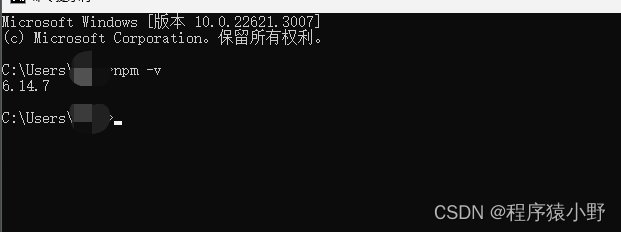 可以通过 npm -v 查看版本号测试,如果显示版本号说明安装成功,反之安装失败