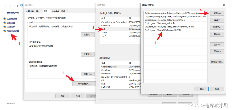 - 如果希望某个程序在任何工作目录下都能正常运行,就应该将该程序的所在目录配置到环境 变量 Path 中