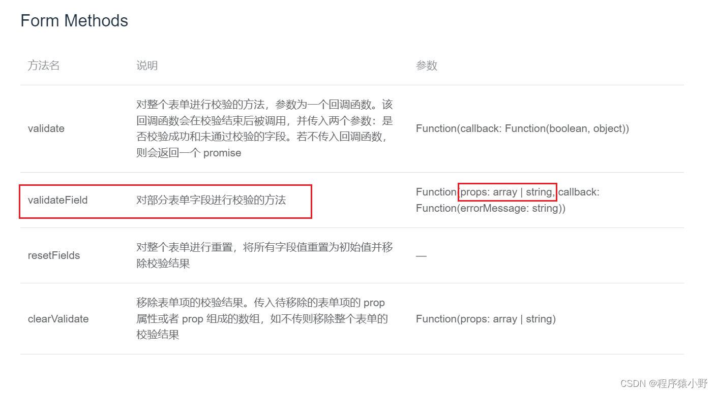 validateField 这个方法接受两个参数,第一参数为数组或者字符串,第二个参数为回调函数