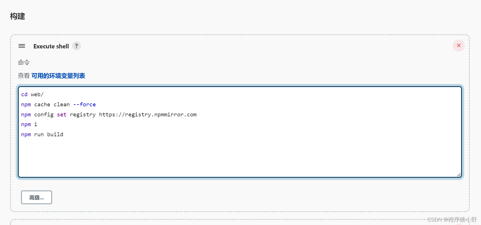 主要是添加判断,如果Jenkins前端项目的工作空间中存在 node_modules 文件夹,则把node_modules 文件夹及其子文件夹都删除。然后在重新 npm install。
