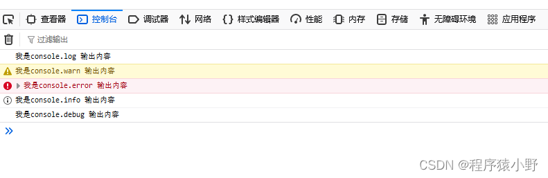 console.debug("我是console.debug 输出内容"); // 谷歌和edge浏览器不支持debug方法,火狐浏览器器显示和log一样
