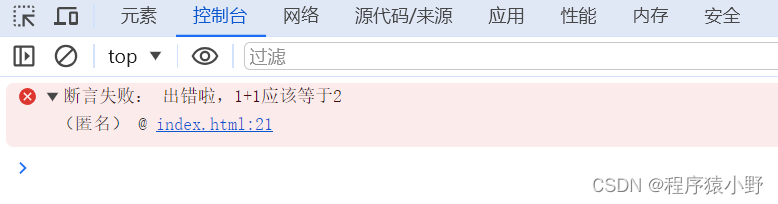 console.assert(1 + 1 === 3, "出错啦,1+1应该等于2");