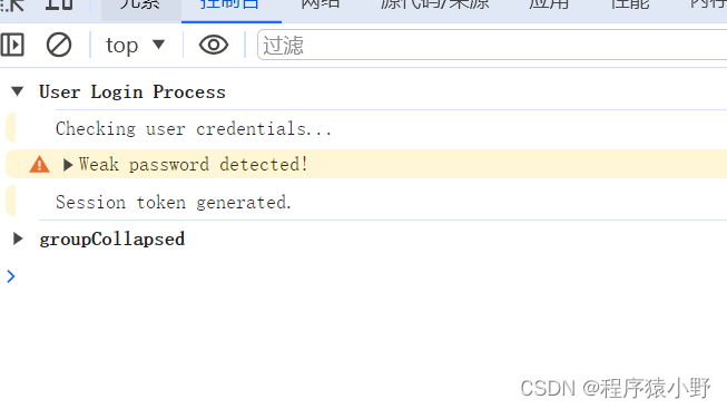 console.groupCollapsed() 和 console.group() 的区别就是 console.groupCollapsed()默认是折叠的,可以手动展开。console.group() 默认是展开的,可以手动折叠