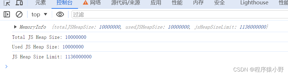 usedJSHeapSize: 返回当前页面已使用的 JavaScript 堆大小(以字节为单位)。这包括了 V8 引擎分配给 JavaScript 对象、闭包、字符串、正则表达式等的内存。totalJSHeapSize: 返回当前页面 JavaScript 堆的总大小(以字节为单位),包括已使用部分和尚未分配的部分。jsHeapSizeLimit: 返回当前页面 JavaScript 堆的最大允许大小(以字节为单位)。超过此限制可能会导致 V8 引擎触发垃圾回收或内存压缩。